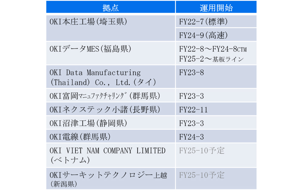 OKIでは、グループ企業を含む多数の製造拠点で実際にAMRの導入を進めている(表1)。