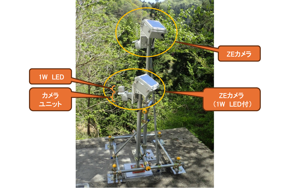 これらの課題を解決するため、次世代型ZEカメラには高出力LED照明ユニットを追加する。撮影時には必要に応じて照明を点灯し、撮影対象物の表面照度を向上させる。高出力LEDを用いることで、比較的遠距離の撮影対象物に対しても、十分な表面照度を確保できる。これにより、完全な暗所環境や遠距離に撮影対象物がある場合でも、明瞭な画像を取得可能となる。