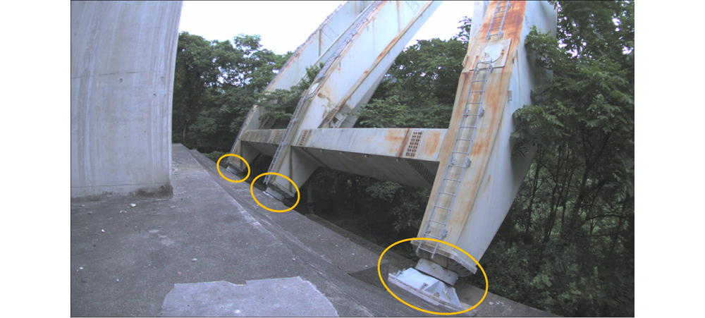 図3 支承監視 昼間の撮影画像と支承位置(丸印)