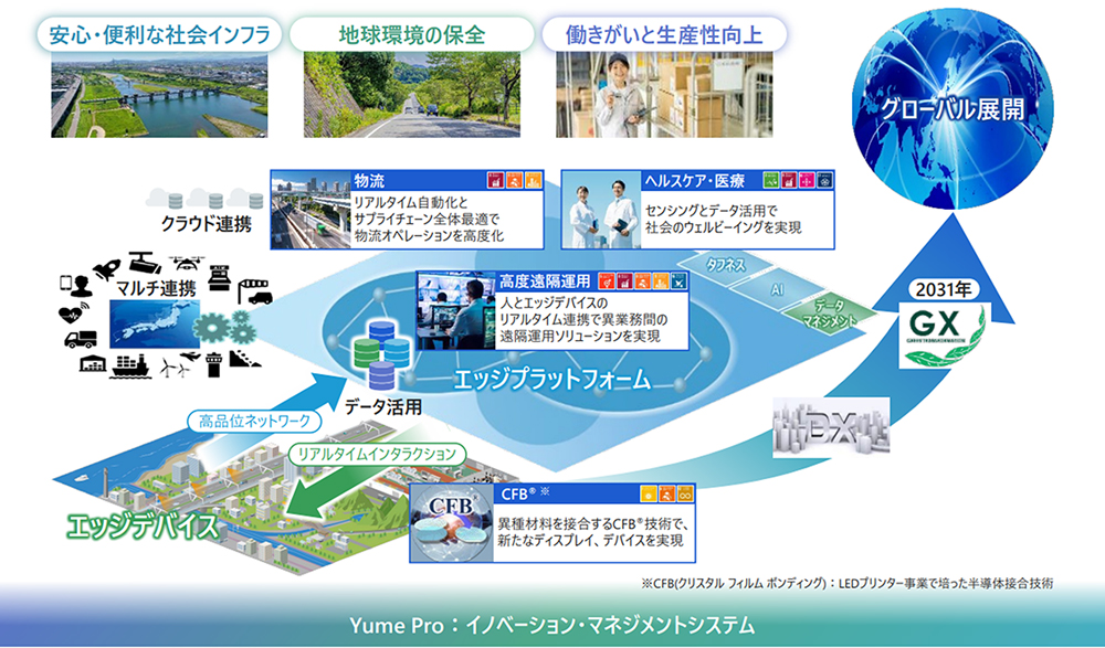 OKIは2031年に向けて「社会の大丈夫をつくっていく。」をキーメッセージとした、新規事業のグローバル展開を目標に掲げ、グローバル展開戦略による持続的なイノベーション活動(図1)の実行を推進し、安全・レジリエンスな社会インフラ、サステナブルな社会づくりに貢献し続けるグローバル企業として、新たな社会価値の創出に取り組んでいる。本稿ではその取組みについて紹介する。