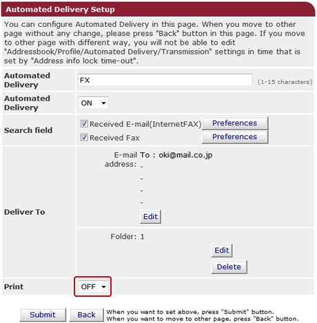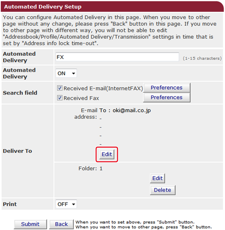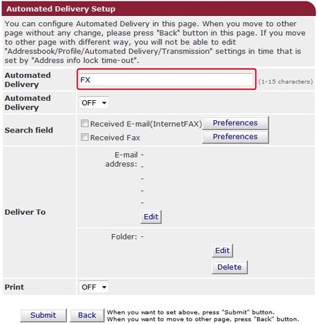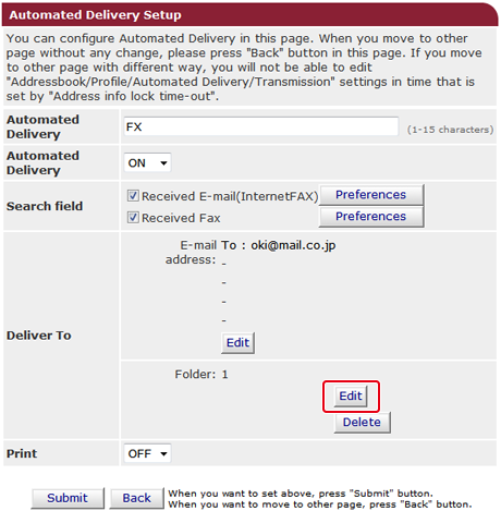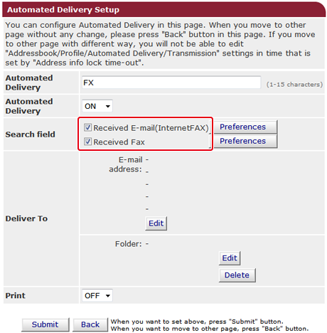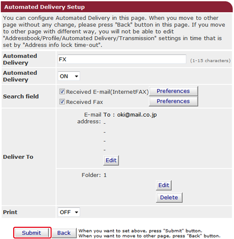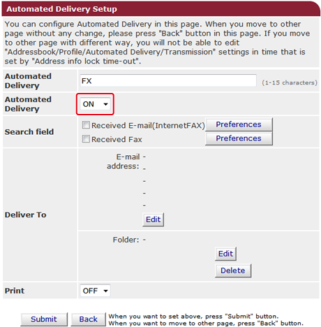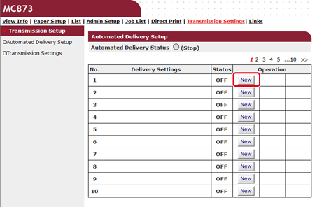 Fare clic su [New] nella pagina [Automated Delivery Setup].