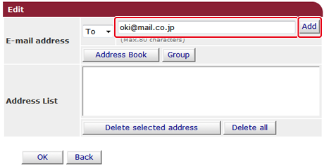 Immettere lindirizzo e-mail di destinazione, quindi fare clic su [Add].
