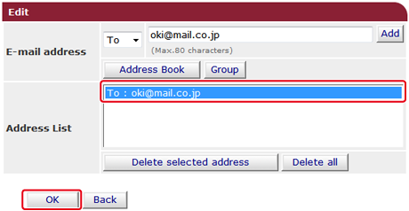 Controllare che l'indirizzo immesso sia visualizzato in [Address List], quindi fare clic su [OK].