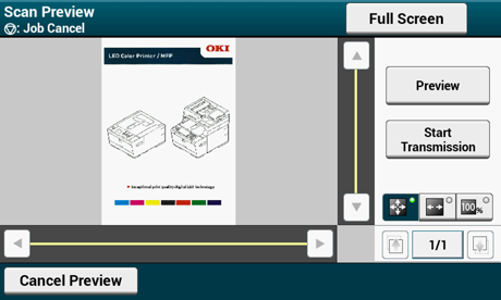 Usando la función de vista previa, puede comprobar la imagen escaneada en el panel táctil antes de guardar o enviar.