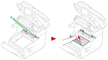 Retire os quatro tambores de imagem e coloque-os numa superfície plana.