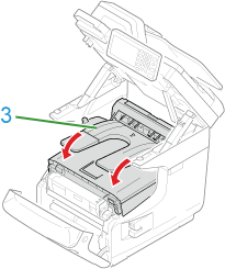 Se não conseguir ver uma ponta do papel, retire o papel encravado, com cuidado, levantando as alavancas de libertação (4) da unidade de fusor.