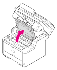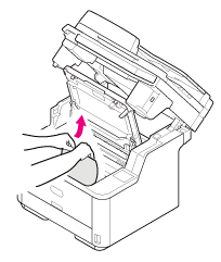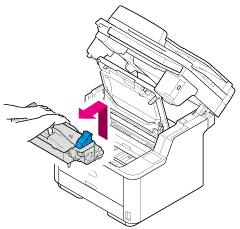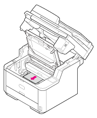 A festékkazetta a hengerrel együtt kijön. Helyezze a festékkazettát lapos felületre, majd tegyen rá papírt, hogy óvja a fénytől.
