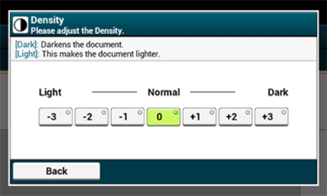 [0] je standardní hodnota. Hustotu zvýíte výběrem moností [+1], [+2] nebo [+3] (nejtmaví). Hustotu snííte výběrem moností [-1], [-2] nebo [-3] (nejsvětlejí).