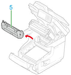 Uchopte fixační jednotku za dradlo (5) a vlote ji do tiskárny.