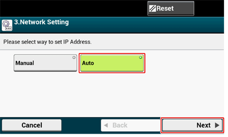 Bir IP adresi ayarlayın. [Auto (Otomatik)] öğesine basın.
