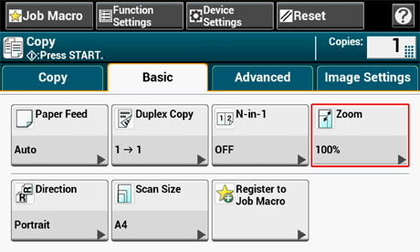 [복사]나 [기본] 탭에서 [확대/축소]를 누릅니다.