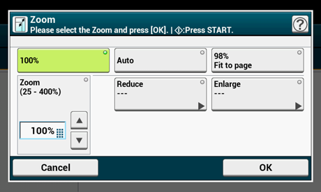 을 눌러 25-400% 범위에서 확대/축소 비율을 입력한 다음 [OK(확인)]를 누릅니다.