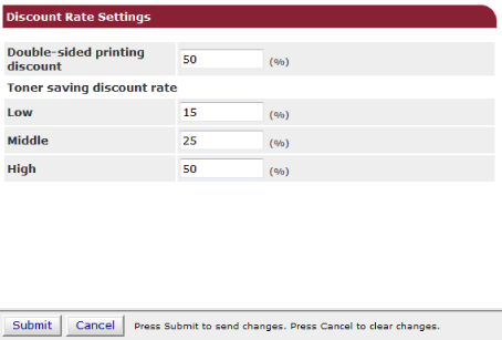 此外,您可以對於雙面列印套用點數扣除系統或省碳進行列印。省碳的減少比例也取決於 [Toner Saving Calculation Setting (省碳計算設定)]。