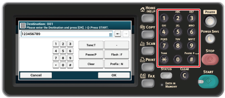 使用數字鍵盤或數字按鈕輸入目的地傳真號碼。