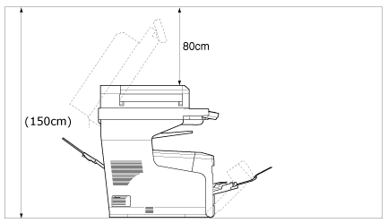 請在機器四周預留空間,如下圖所示。
