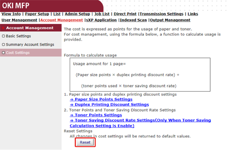 只有在點數計算類型是預設設定時,才可在機器的網頁上進行設定。如果 [Cost Settings (成本設定)] 未顯示,請檢查點數計算類型設定。