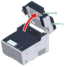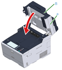 握住把手 (B),將掃描器 (a) 完全打開。