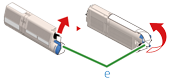 撕下碳粉匣的膠帶 (e)。