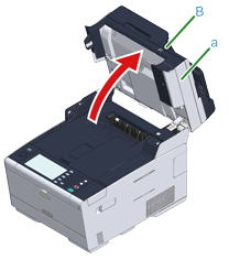 握住把手 (B),將掃描器 (a) 完全打開。