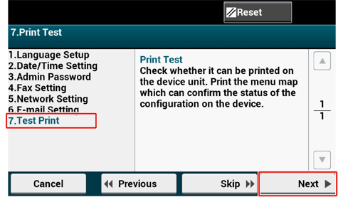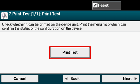 確認顯示 [7. Print Test (7. 列印測試)] 畫面,然後按下 [Next (下一步)]。