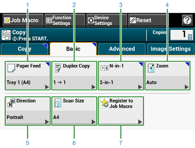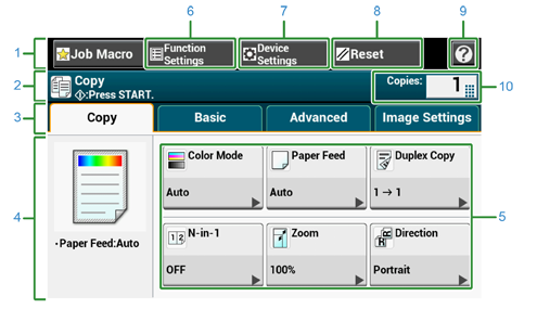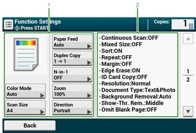 Weergeeft een vooraanzicht van kopieer uitvoer dat wordt geproduceerd met de huidige instellingen. |