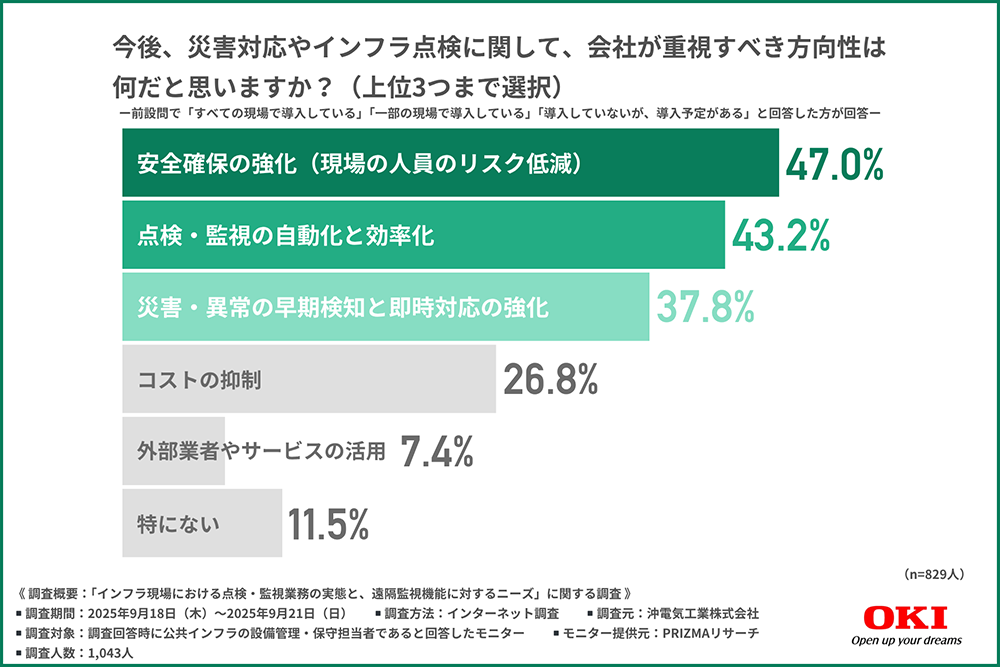 最も多かった「安全確保の強化」は、現場の人員のリスクを低減することが組織にとって最優先であることを示しています。