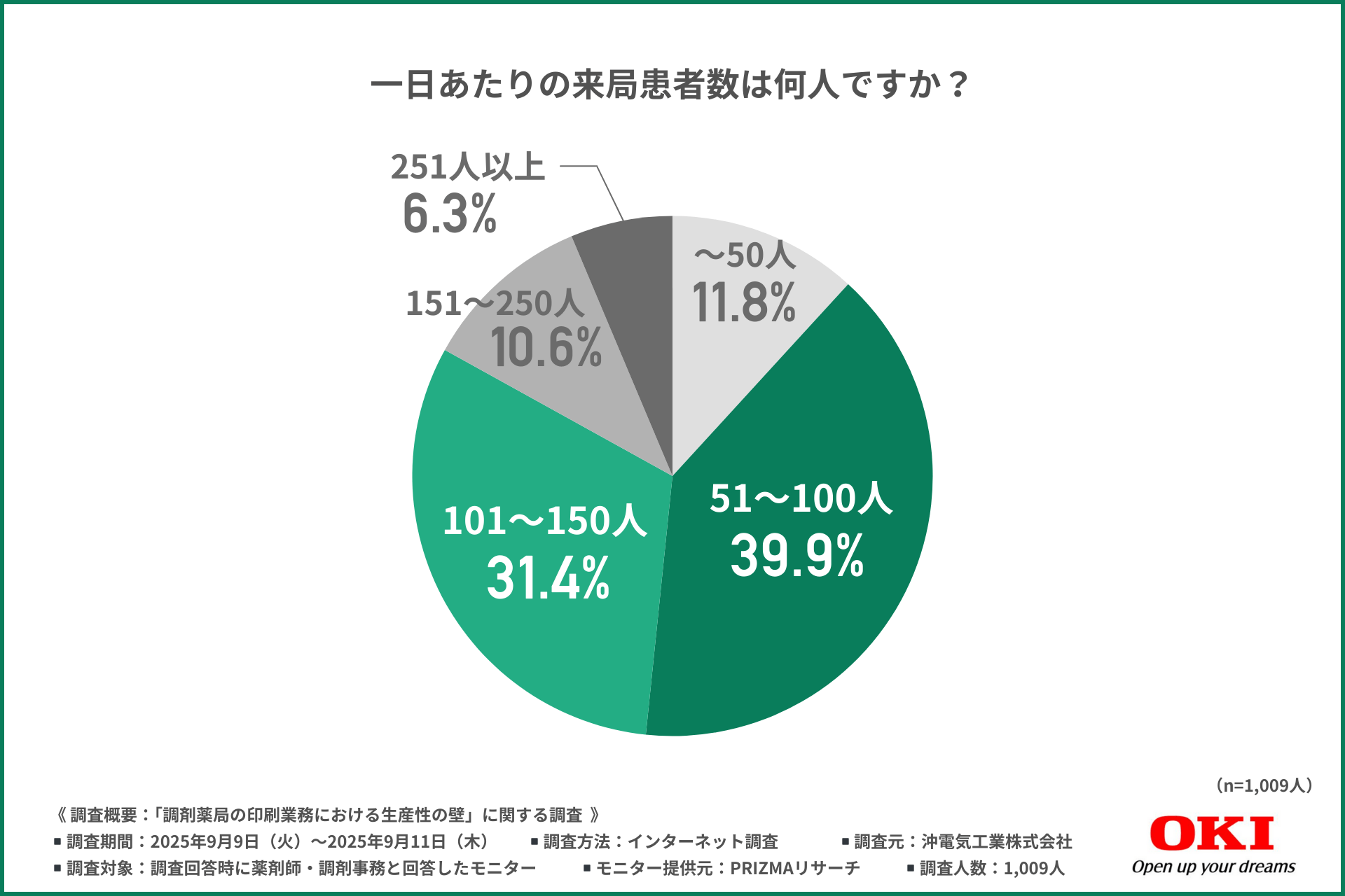 来局患者数が『51~100人』の薬局が最も多いという結果から、多くの薬局が中規模の患者数を扱っており、その規模での印刷業務の効率が業務全体の生産性に大きく影響することがうかがえます。