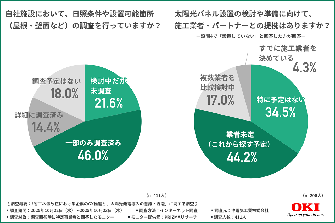 では、太陽光発電システムの導入のために、日照条件や設置可能箇所の調査を行っている企業はどれくらいあるのでしょうか。