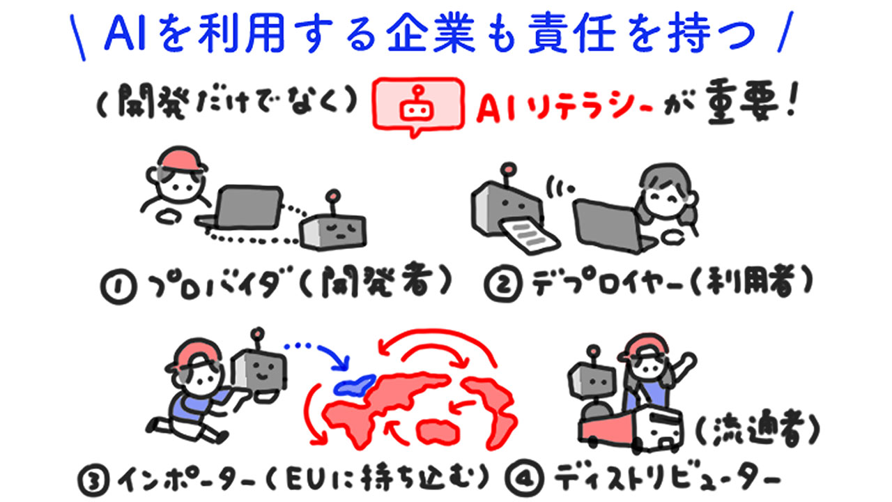 このうち、日本企業は、①プロバイダーや②デプロイヤーに該当するケースが多く、自社がどの立場にあるかを正しく認識することが、法対応の第一歩になります。