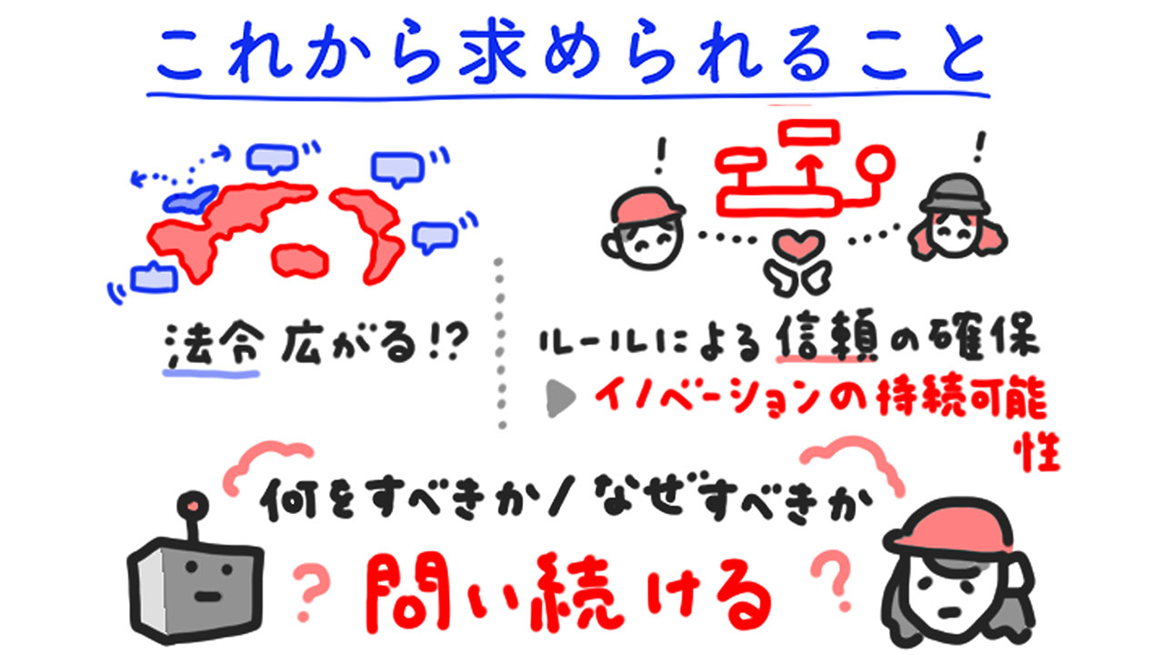 AI法という言葉には、ネガティブな印象を抱く人も少なくありません。しかし、AI法が示すのは「制限による抑止」ではなく、「ルールによる信頼の確保」です。誰もが安心してAIを利用できる社会をつくるには、最低限の共通ルールが必要であり、それがあってこそ、イノベーションは持続可能になります。