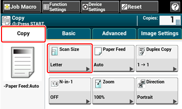 Press [Scan Size] on the [Copy] or [Basic] tab.