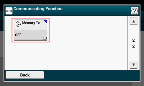 Pressing [Memory Tx] switches between [ON] and [OFF].