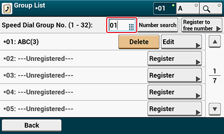 The numbers that are registered in groups with the [Speed Dial] function synchronize the numbers that are registered in groups with the [Group No] function.