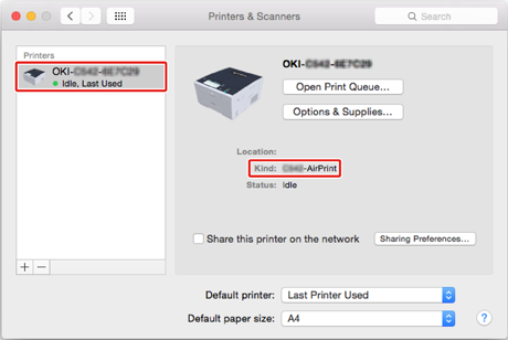 Check that the machine is displayed in [Printers], and [OKI C542-AirPrint] is displayed in [Kind].