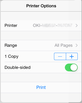 (Print).The name of the printer model that you used most recently and exists on the same network is displayed.