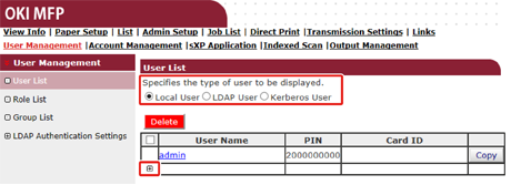 Appuyez sur [Copy (Copier)] à droite du nom de lutilisateur pour afficher lécran dinformations de lutilisateur, changez les éléments le cas échéant, puis enregistrer.