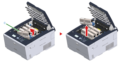 Soulevez la cartouche de toner (c) à partir du côté droit et retirez-la de la machine.