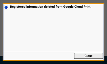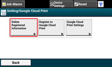 Wenn Sie diese Information löschen und das Gerät mit einem Netzwerk verbunden ist wird außerdem die Registrationsinformation im Google Cloud Print Administratorbildschirm gelöscht.
