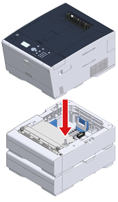 Wenn Sie zwei zusätzliche Kassetten installieren möchten, verbinden Sie sie mit den Verriegelungsstücken.