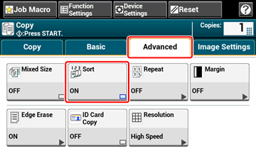 Controleer of [Sort (Sorteren)] op het [Advanced (Geavanceerde)] tabblad op [ON (AAN)] is ingesteld.