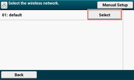Selecteer een draadloos LAN-toeganspunt om verbinding mee te maken en druk dan op [Select].