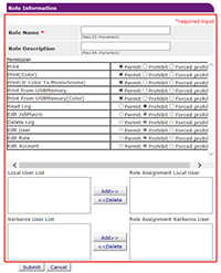 Deze rol is voor de beheerder van het apparaat. Het kan worden toegewezen aan algemene gebruikers. Gebruikers waaraan [.AdminRole (.Beheerdersrol)] is toegewezen, kunnen optreden als beheerders van het apparaat en hebben toegang tot de pagina [Administrator Login (Berheederaanmelding)] van de webpagina. (Zolang het toegangsbeheer is ingeschakeld en ze als lokale gebruikers zijn geregistreerd.)