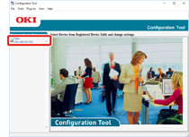 Haga clic en [Start (Inicio)] y a continuación seleccione [Okidata (Okidata)] > [Configuration Tool]. Seleccione la máquina en [Tabla del dispositivo registrado].