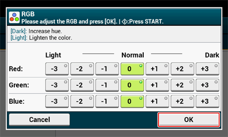 Seleccione um valor de cada para RGB e prima [OK].
