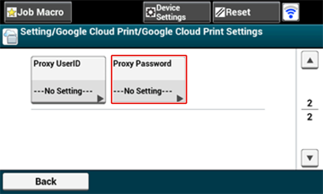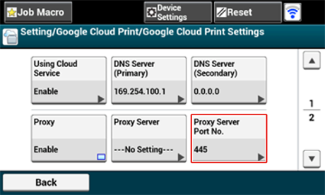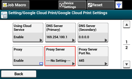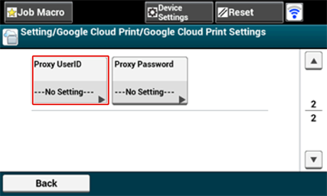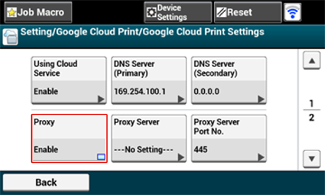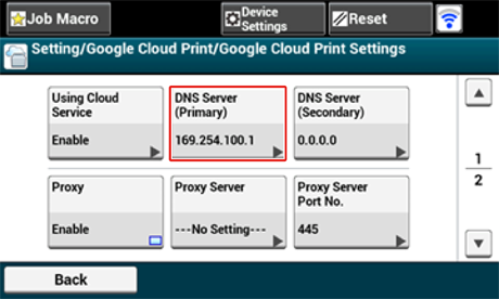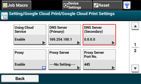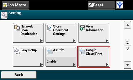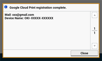 Tryk på [Tilbage] for at vende tilbage til menuen [Google Cloud Print].
