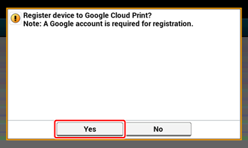 Når [registrer enhed til Google Cloud Print? Obs. En Google-konto er påkrævet for registrering.] Vises, skal du vælge [Ja].