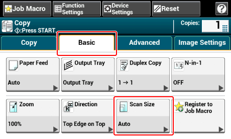 Tryk på [Scan Size (Scanningsstørrelse)] på fanen [Basic (Standard)].