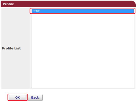 Valitse datan tallennuskohde [Profile List]-luettelosta ja napsauta [OK].