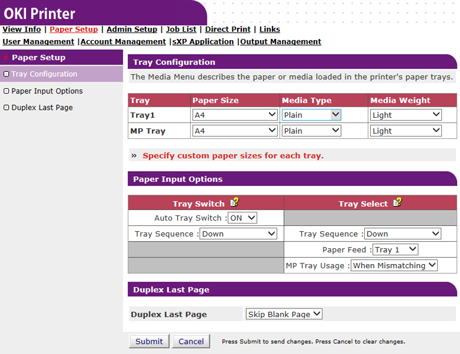 Tray Configuration |