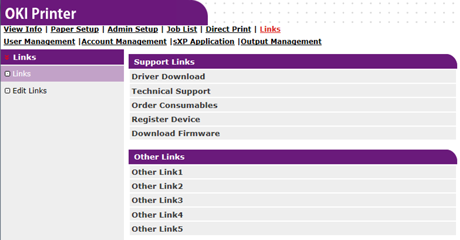 Pääkäyttäjäsi voi asettaa mitä tahansa URL-linkkejä. Viisi tukilinkkiä ja viisi muuta linkkiä voidaan kirjata. Liitä "http://" syötettyyn URL-osoitteeseen. |